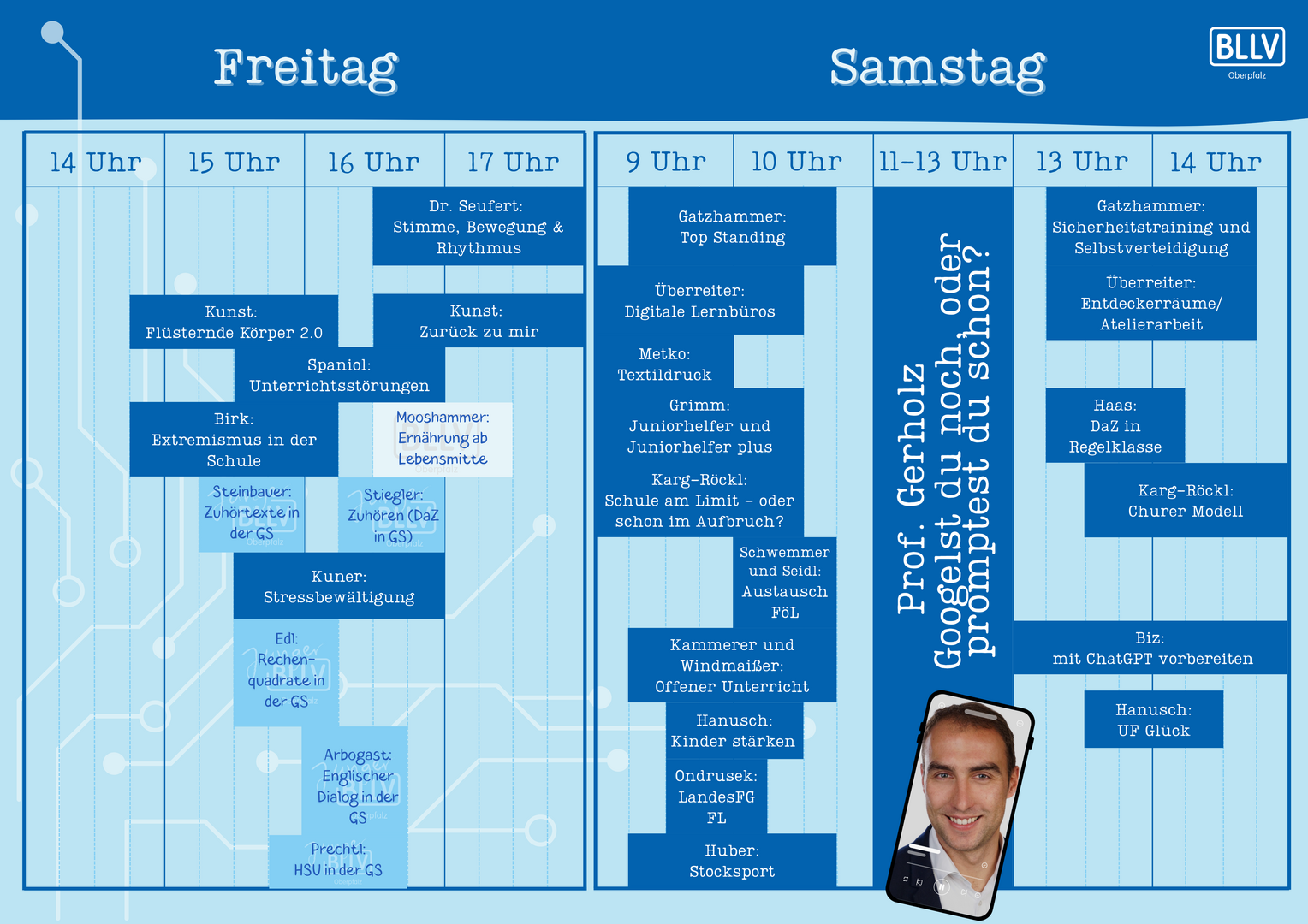 Es kann kurzfristig zu Änderungen im Programm kommen. Alle aktuellen Informationen sind in der App hinterlegt. Bei Fragen auf dem Amberger Seminar können Sie sich jederzeit an unsere Helfer am Info-Stand wenden.