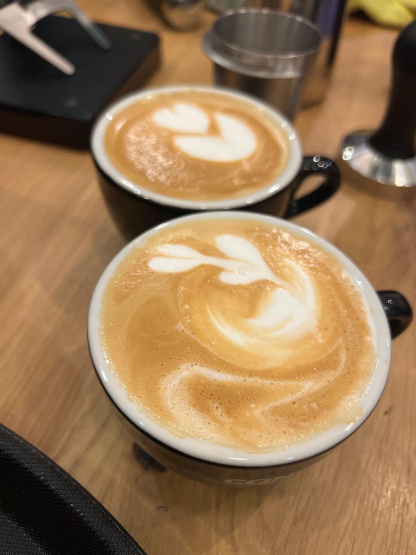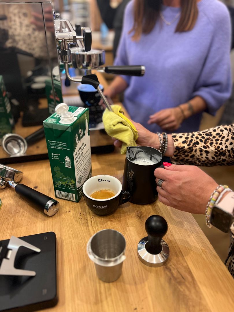 Ein weiterer Höhepunkt war die praktische Übung an der Siebträgermaschine: Mit viel Begeisterung probierten sich die Teilnehmenden in der Kunst der Latte Art und zauberten beeindruckende kleine Kunstwerke in die Milchschaum-Tassen.