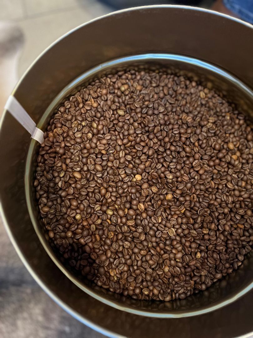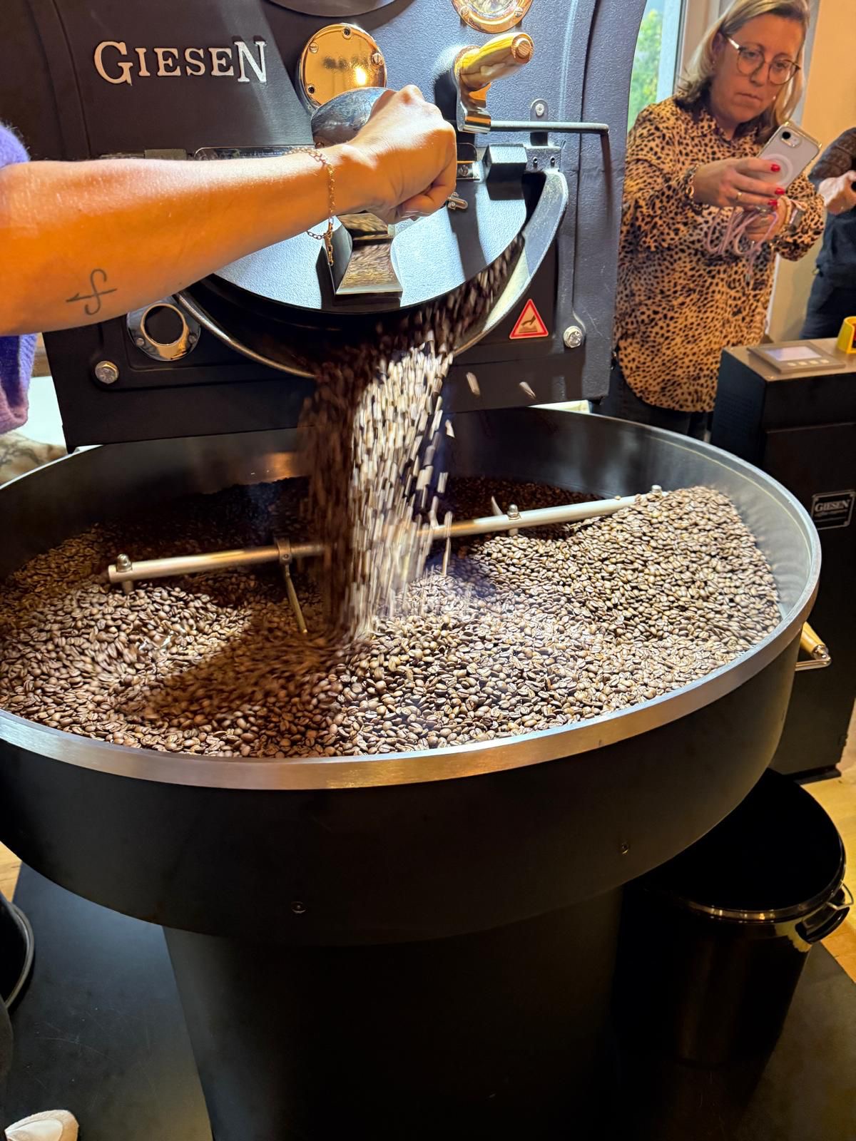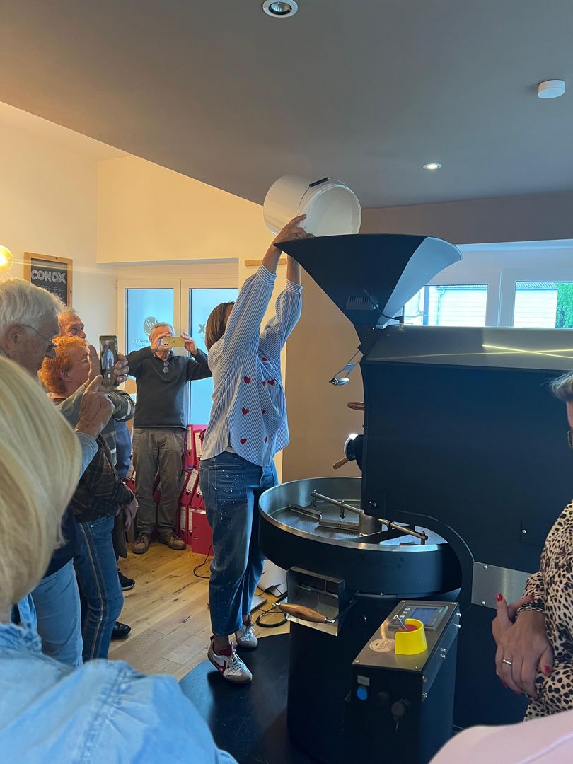 Zu Beginn der Veranstaltung ließen es sich die Teilnehmenden bei Kaffee und Kuchen gutgehen und nutzten die Gelegenheit zu anregenden Gesprächen. Im Anschluss gewährte Diana vom Kaffeeladen spannende Einblicke hinter die Kulissen der hauseigenen Rösterei. Die Gruppe durfte nicht nur zusehen, wie Kaffee frisch geröstet wird, sondern auch den Unterschied zwischen Arabica-und Robusta-Bohnen erschnuppern.